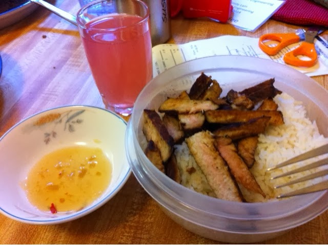 Anyway, for lunch, I had a very protein heavy meal: rice and soy-sauce marinated pork chop. But that protein did me well! I did not feel hungry at all until now: 7:15PM. I did have tea along the way. But I don't think that's significant.