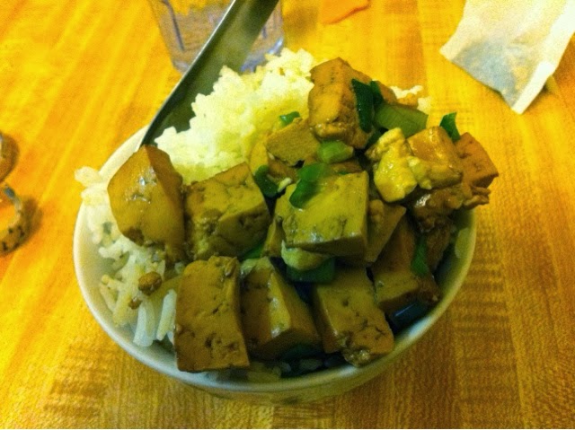 And then for dinner, I had rice and braised tofu, flavored with scallions, soy sauce, and pepper flakes.